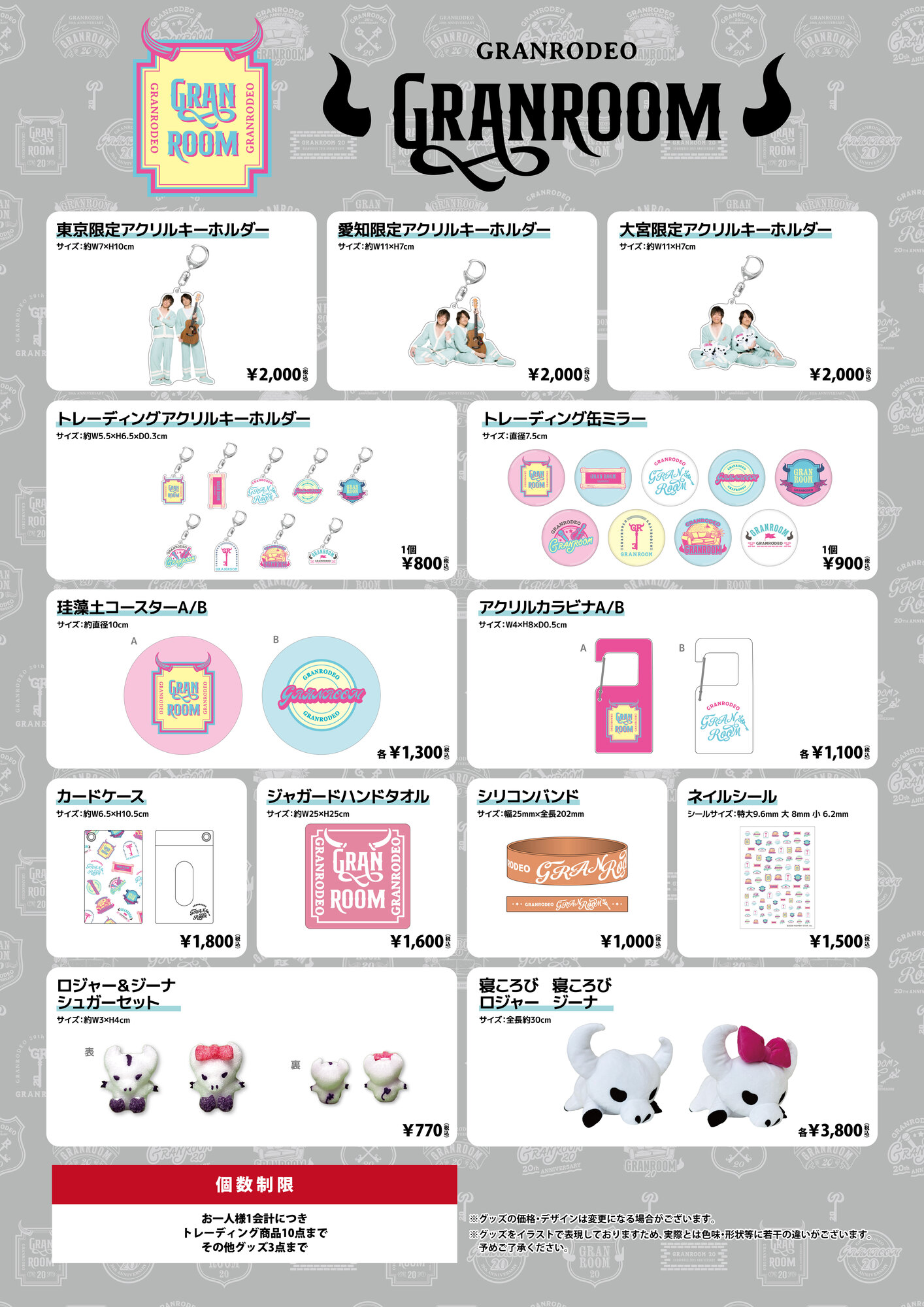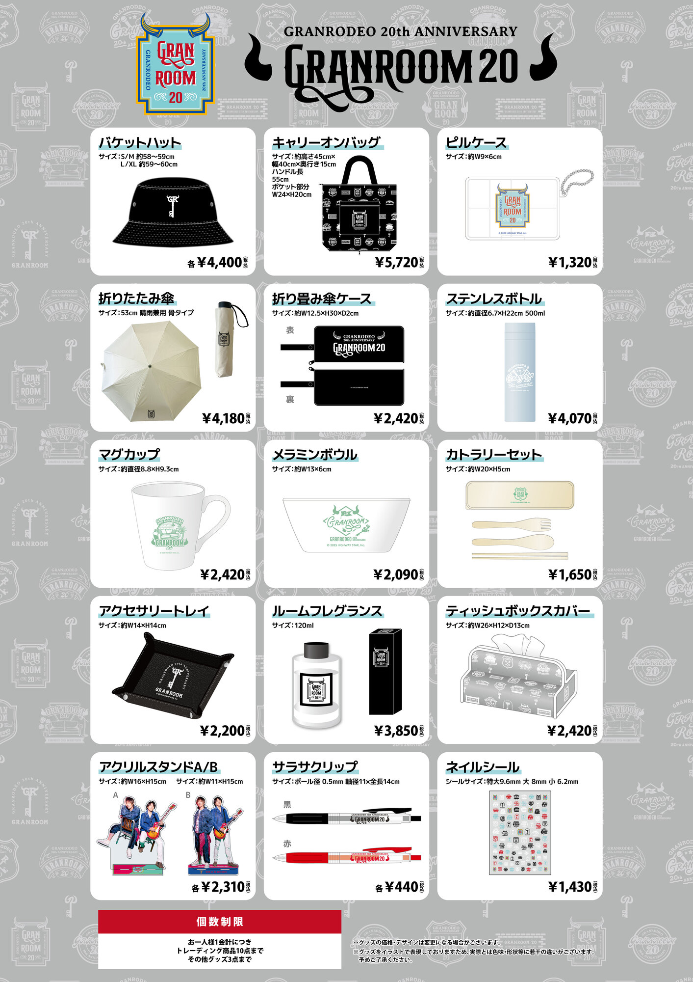 GRANROOM20のグッズも数量限定で販売いたします!